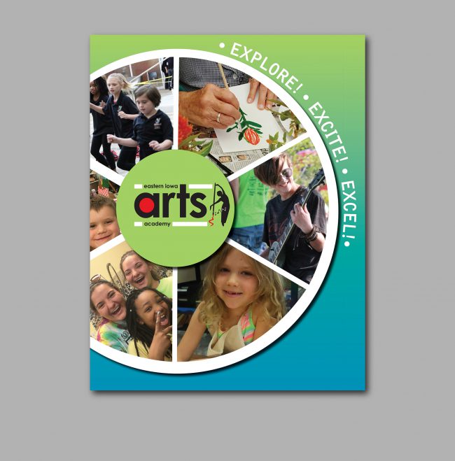 Eastern Iowa Art Academy uses these booklets to showcase the programs, kids, and special populations they serve with instruction in art, music, and dance. Shown here are the cover and a few spreads out of this 20-page booklet.