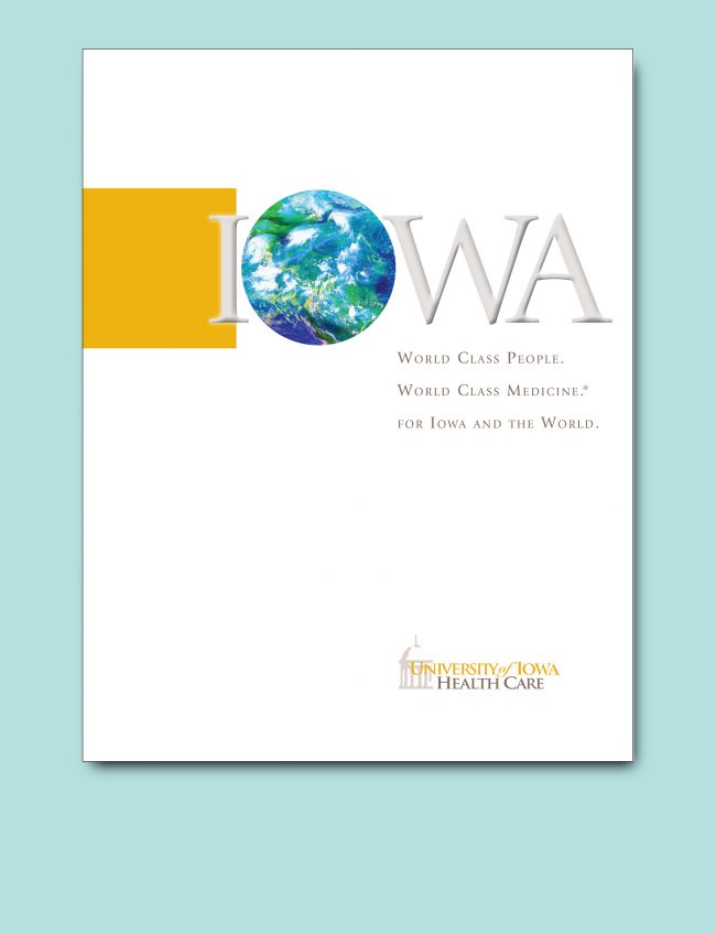 The concept behind this annual report was the impact of Unversity of Iowa Health Care on Iowa and the entire world. The cover was embossed with a multi-level image of the world, and dimensional letters. A clear foil was used on the world embossing, and a pearlized foil was used for the letters. The result…